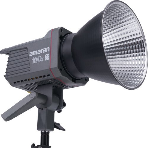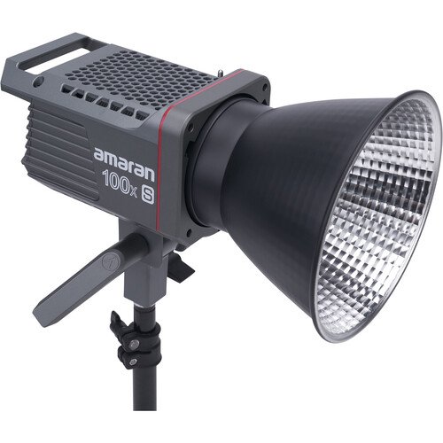 Designed with the familiar monolight form factor, intuitive design, and solid core features, the 100x Bi-Color LED Monolight from amaran is a 100W light source with variable color from 2700 to 6500K and a CRI/TLCI rating of 95 to indicate advanced accuracy in color rendering. This fixture outputs up to 34,300 lux at 3.3′ using its included reflector. The light is dimmable from 0 to 100%, and while you can make these adjustments locally on the fixture, you can also make them via Bluetooth with your smartphone and the free Sidus Link app.