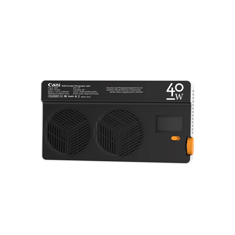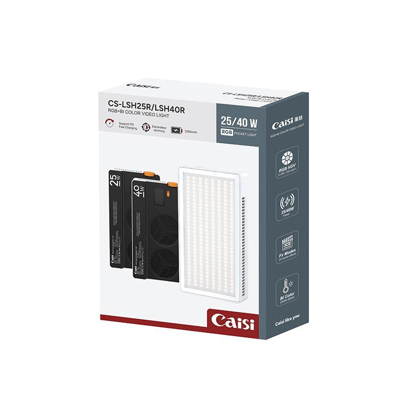 Enhance your creative lighting with the CS-LSH40R 40W RGB LED Video Light, a powerful, compact, and versatile lighting solution designed for photographers, filmmakers, and content creators. With a wide color temperature range of 2500K–9000K, this light delivers precise color control for any environment—from warm tungsten tones to cool daylight balance.