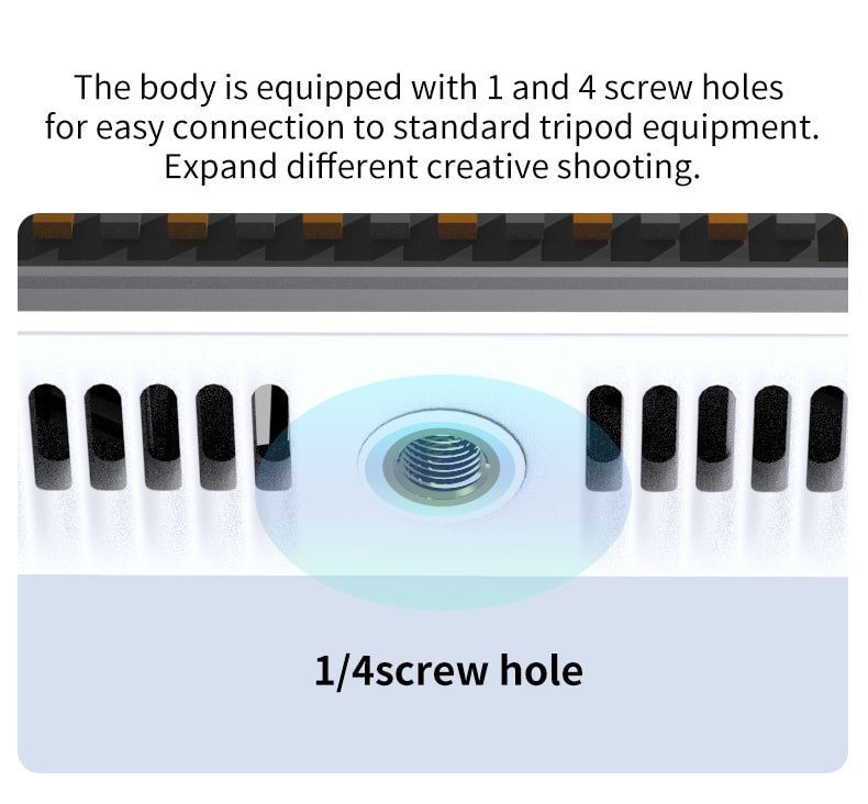 1/4″ Screw Mount: Compatible with tripods, camera rigs, and stands for flexible positioning.