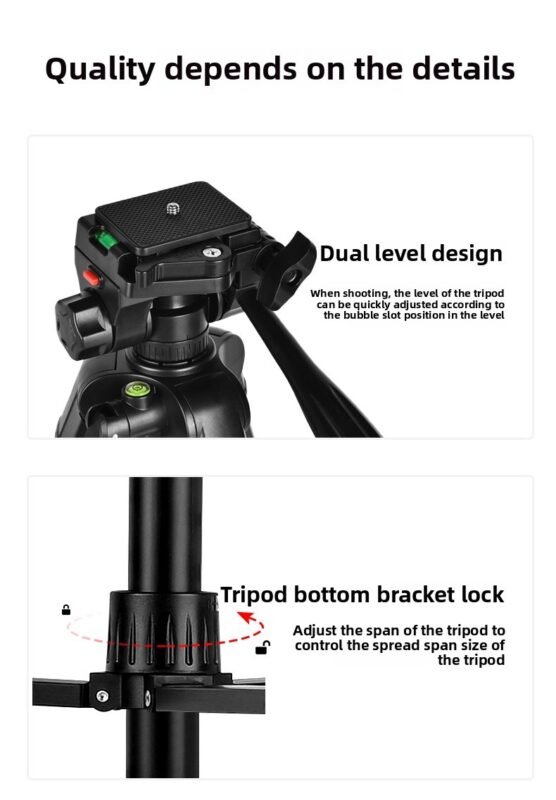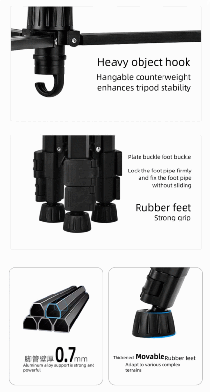 The quick release plate lets you mount or remove your camera or phone in seconds, ensuring a smooth shooting experience even when you’re on the go. It’s fully compatible with smartphones, DSLR cameras, GoPros, and even iPads, making it the ultimate all-in-one tripod.