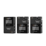 Designed for mobile journalists, videographers, and vloggers, the black Comica BoomX-D PRO D2 is an ultracompact, true wireless digital microphone system with two microphones and just one receiver. It offers a complete solution for recording dialogue, interviews, and speech with two people talking simultaneously—directly to a mirrorless/DSLR camera, mobile device, or computer with backup audio recording available on each transmitter.