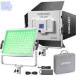 The panel is fully dimmable from 0 to 100% and allows adjustments locally on the fixture or remotely with the Godox Light app from your smartphone. On the back, a screen displays brightness percentage, color temperature, and other essential settings. The app lets you control the light via Bluetooth from up to 49.2′ away.