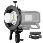 The Bowens S2 Speedlite Bracket from Godox is a more compact and portable S-type bracket than the original Speedlite Bracket. It lets you maximize on your use of on-camera flashes while giving you the opportunity to use Bowens accessories. The bracket supports your flash either vertically or horizontally, employing non-scratching, light pressure rather than touch-fasteners or tape. Light modifiers such as reflectors, softboxes, and snoots mount to the front of the bracket as they would on a Bowens flash head. The bracket tilts nearly 180 degrees and has a 5/8″ receiver for stand mounting.