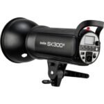 The SK300II features 0.4-2.5 sec recycling and 1/800 to 1/2000 sec flash durations.