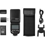 The Godox V850III features an adjustable zoom range of 20 to 200mm zoom range that accommodates many different lenses. Tilting vertically from -7 to 120° and rotating a full 360°, this flash enables you to bounce light with ease even if it is mounted on top of the camera. It uses a Lithium-Ion battery which is rechargeable and allows for 600 full-power flashes when fully charged. Support for high-speed sync triggering as fast as 1/8000 seconds is available with optional triggers. The flash comes with the rechargeable battery as well as a charger, small stand and protective case.