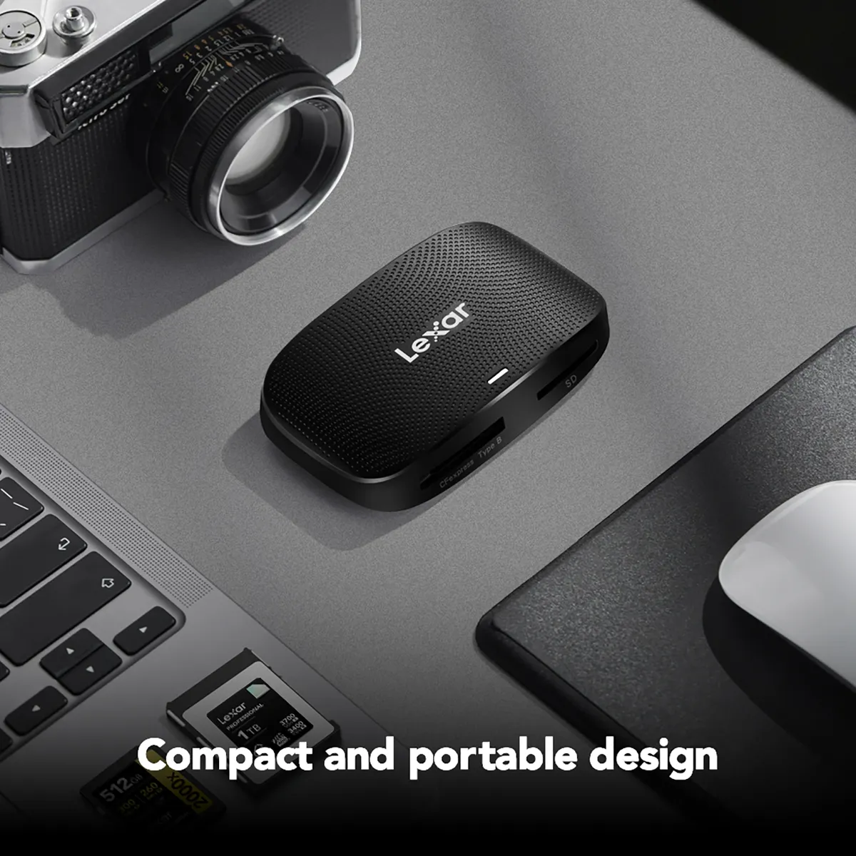On location, laptop ports are sometimes in short supply. Which is why we designed the Lexar Professional CFexpress Type B / SD USB 3.2 Gen 2 Reader to fit in one port, while offering two slots-one for CFexpress cards and one for SD cards.