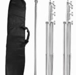 The background stand will work with cloth and paper backgrounds; The crossbar supported by heavy-duty stainless steel uprights and The vertical uprights can be used as light stands for a completely versatile all-in-one system; Telescopic background support bar and a professional carrying/ storage bag; The perfect background stand convenient for on-location work where portability is required. Stainless steel stands protect equipment from damage due to sufficient tightening of the stand section locks. It is great for photography backdrops, puppets and quilt presentations.